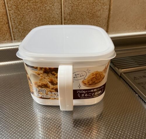 セリアで購入したのは 味噌の保存容器と、パンの冷凍保存袋の2点 昨年冷蔵庫を買い替えてから、味噌をこれまでのスペースに置けなくなり 置く場所を変えたら、使い難い 落として、蓋が開き市販の容器にもヒビが入り、床が味噌でベチャベチャになった事もある…