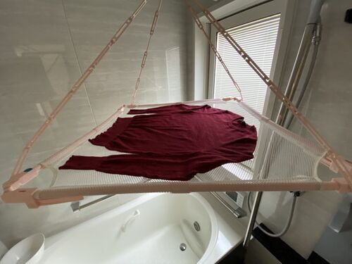 良い天気なのですが、今日は黄砂がひどい(らしい)です。 最後の冬物セーターの1枚を手洗いし、室内乾燥です。 くすんだ赤いセーター。(実物はもう少し赤いです) シンプルなクルーネックセーターです。 セールで半額で購入したまま、袖を通していなかった…
