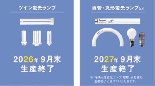 皆さんご存知なんでしょうか? 私は、全く頭に入ってませんでいた 今回、切れた電球交換で調べて知った次第です ちなみに、パナソニックでは直管・丸形蛍光ランプなどが2027年9月末で生産終了です 他にパナソニックではツイン蛍光ランプは2026年9月末には生…
