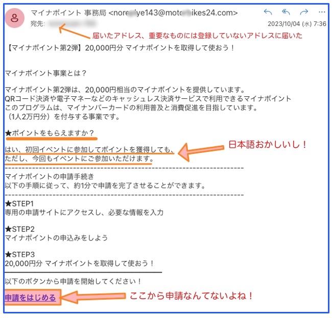 マイナポイントは一度もらってますが、再度もらえるかのような怪しいメール!!